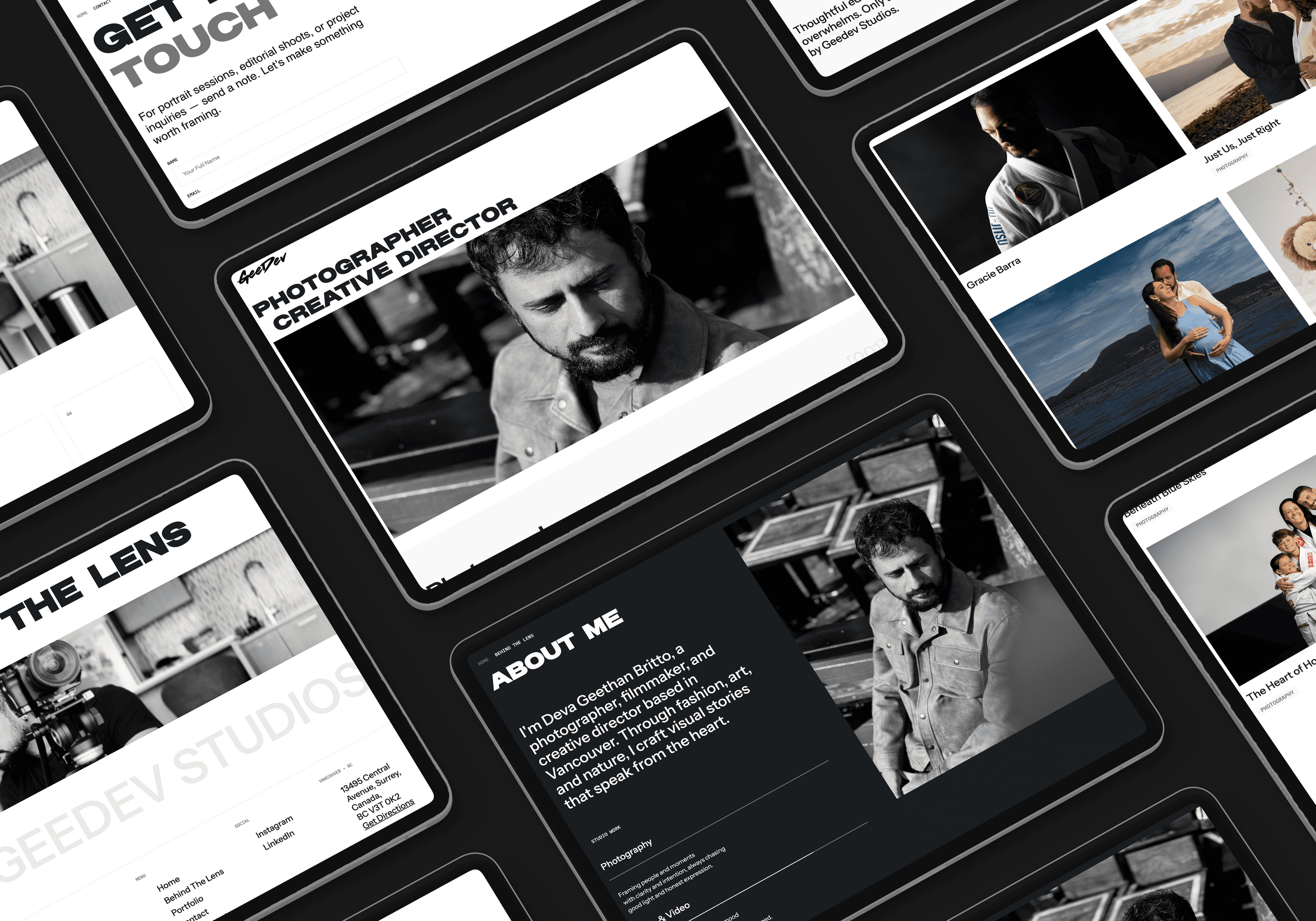 I worked with Geedev Studios, a photography studio based in Vancouver, to design and develop their custom WordPress website — a clean, responsive platform to showcase editorial, portrait, and event work. I also created a cohesive visual identity for the brand, ensuring consistency across digital and print applications. In addition to digital design, I contribute to the studio’s ongoing creative process through retouching, social media content, and on-set production support during photoshoots. Photo Retouching: Enhancing and retouching images to align with the studio’s aesthetic. Social Media Promotions: Designing content and planning strategies to boost online presence and audience engagement. Photoshoot Assistance: Supporting live shoots with lighting, styling, and production coordination. This project combines my skills in digital design, branding, and photography — helping Geedev Studios present its work with clarity and impact.